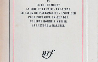 Ionesco, Eugène: Thèathre II, Paris, Gallimard, 1958, 18,5 x 12 cm. Brossura editoriale; pp. 256, (8). Dedica autografa firmata e datata (1958) di Ionesco alla contessa Madame De Felsi. Edizione originale nella tiratura corrente. Carta leggermente arrossata, ma esemplare ben conservato. Il volume raccoglie: L’Impromptu de l’alma, Tueur sans gages, Le nouveau locataire, L’Avenir est dans les oeufs, Le maitre, La jeune fille a marier.